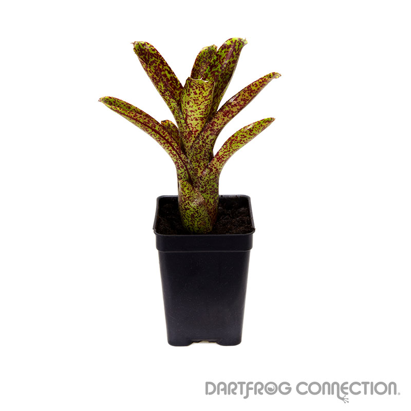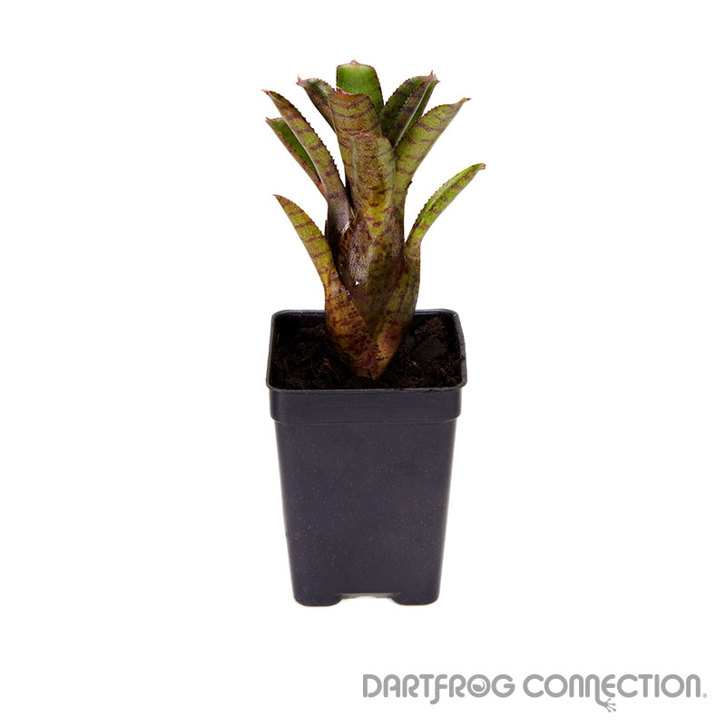 Bromeliad is an Epiphytic plant. These plants can grow without soil. They are perfectly suited for the dart frog lover’s vivarium. There are over 3,000 different species of Bromeliads. They care is all about the same. Bromeliads will not only make your terrarium come to life, but a number of dart frog species rely on them for tadpole deposits as well as for egg laying sites and hiding places.